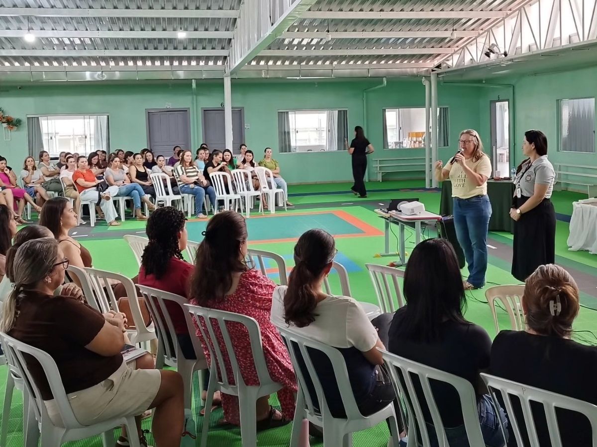 No período da manhã, a abertura da educação infantil aconteceu no CEI Carrocinha do Amor, com a palestra “Pensar fora da caixa: transformando olhares, criando possibilidades”, ministrada pela formadora do Sistema de Ensino Aprende Brasil, Beatriz Conci Cassins. A abordagem pedagógica destacou a importância da criatividade, da autonomia e do protagonismo dos alunos no processo de aprendizagem.