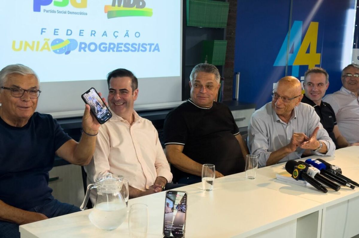 Durante coletiva, o clima foi de descontração entre os agora aliados. Em tom de brincadeira, Pinho Moreira comentou com Amin: “Agora é 15 e 11”, fazendo referência aos números dos partidos e arrancando risos dos presentes.