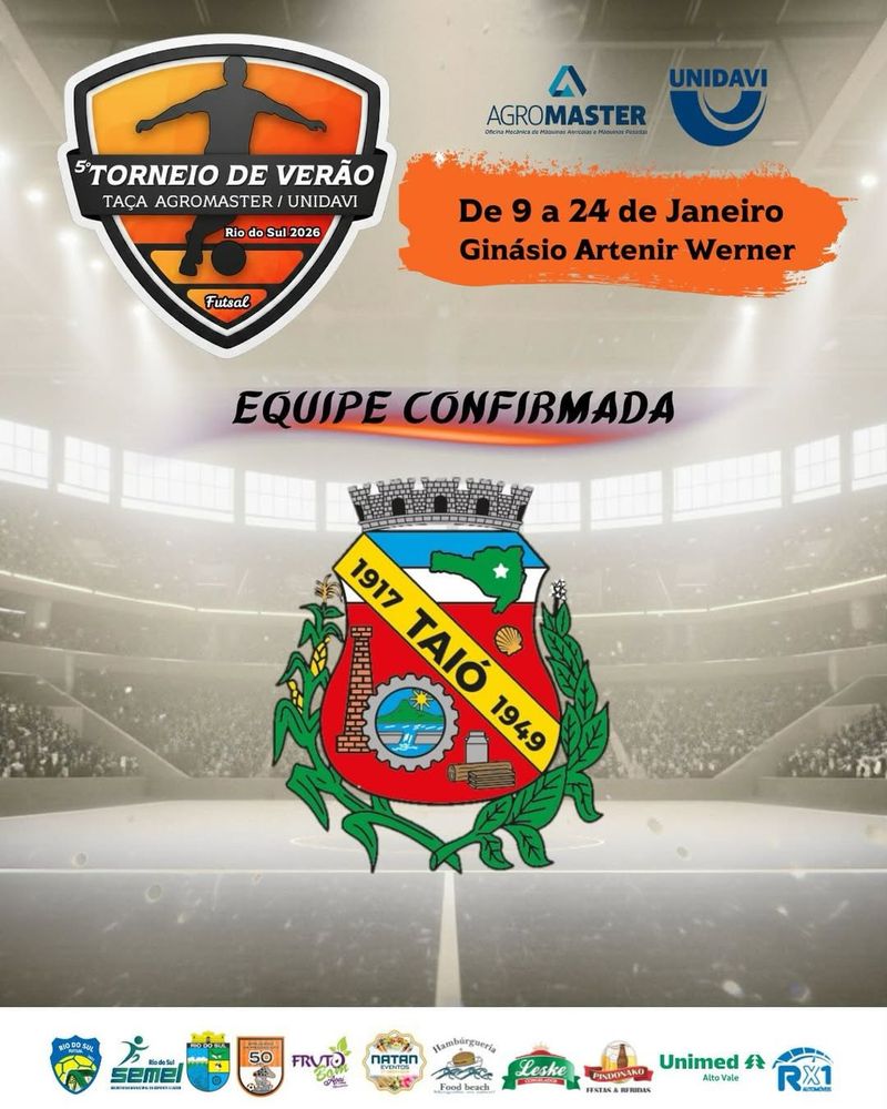 Em apenas quatro edições disputadas, a equipe de Taió acumula um histórico de respeito: três finais alcançadas, dois títulos conquistados, um vice-campeonato e um terceiro lugar. Agora, o time está confirmado na 5ª edição do Torneio de Verão – Taça Agromaster / Unidavi e retorna com a missão de defender o título obtido na última temporada.