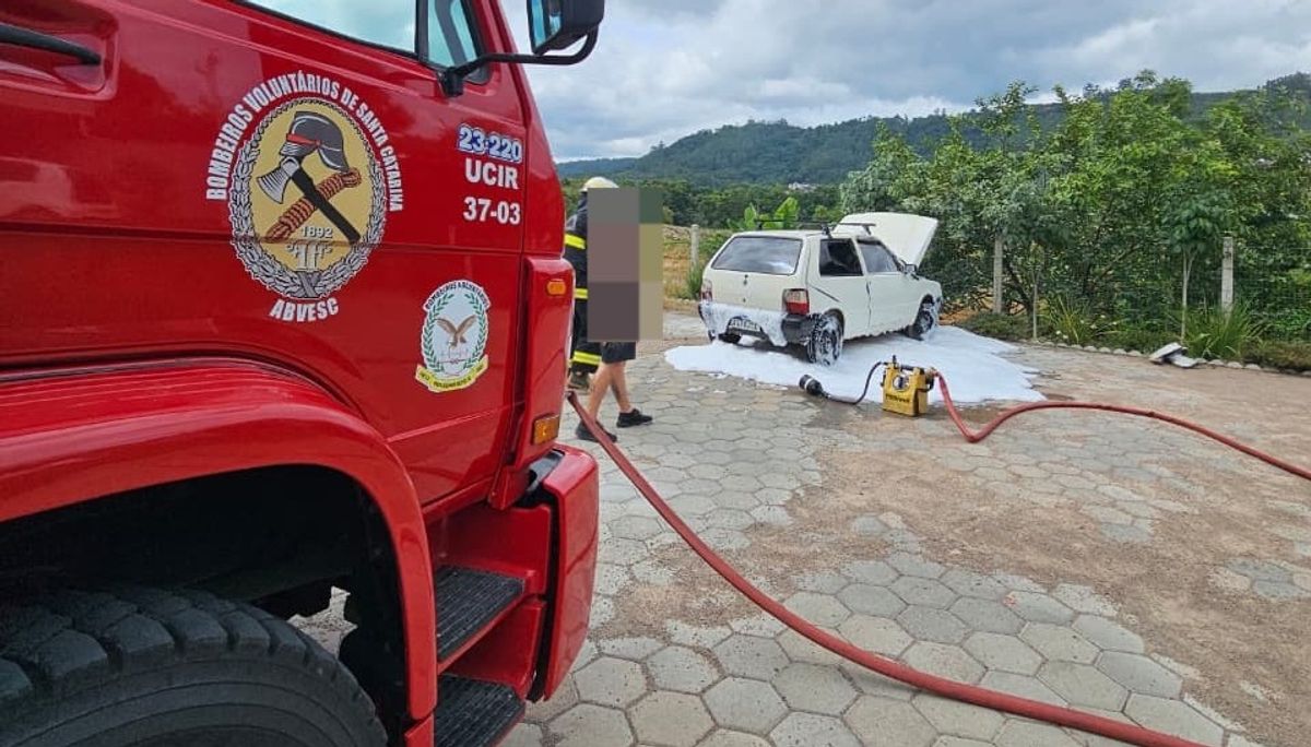 Uma equipe de combate a incêndios foi mobilizada e, ao chegar ao local, constatou que as chamas já haviam sido controladas pelo proprietário do automóvel, um Fiat Uno.