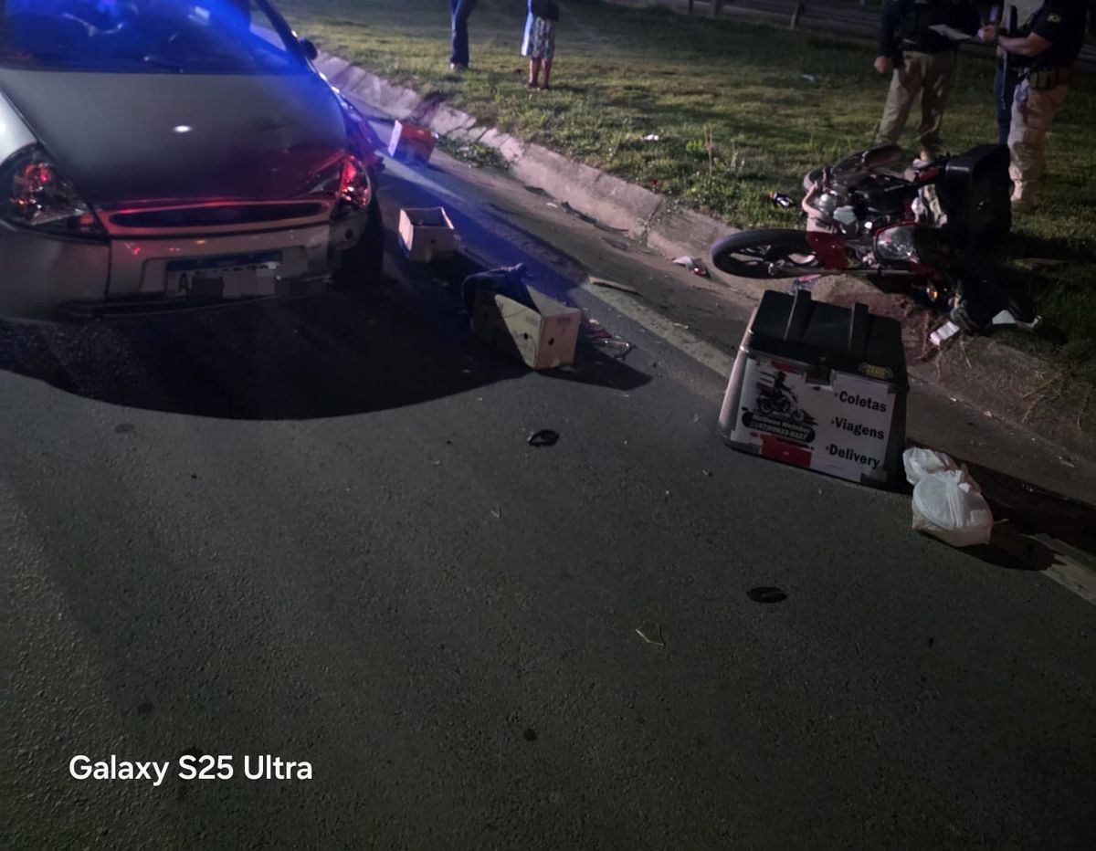 Um acidente de trânsito envolvendo um automóvel e uma motocicleta foi registrado na noite desta quarta-feira (2), por volta das 22h16, em Mafra.