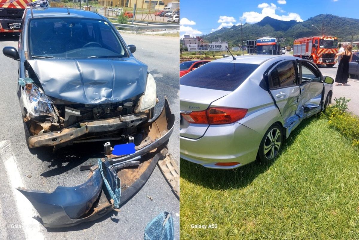 Uma colisão fronto-lateral entre dois veículos ocorreu às 12h09, na BR-470, km 89, bairro Estação, em Ascurra.