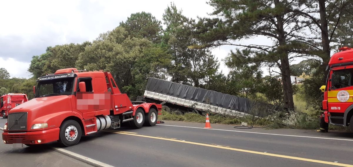 Caminhão ficou sobre carro após impacto próximo a Três Barras; resgate durou mais de 4 horas