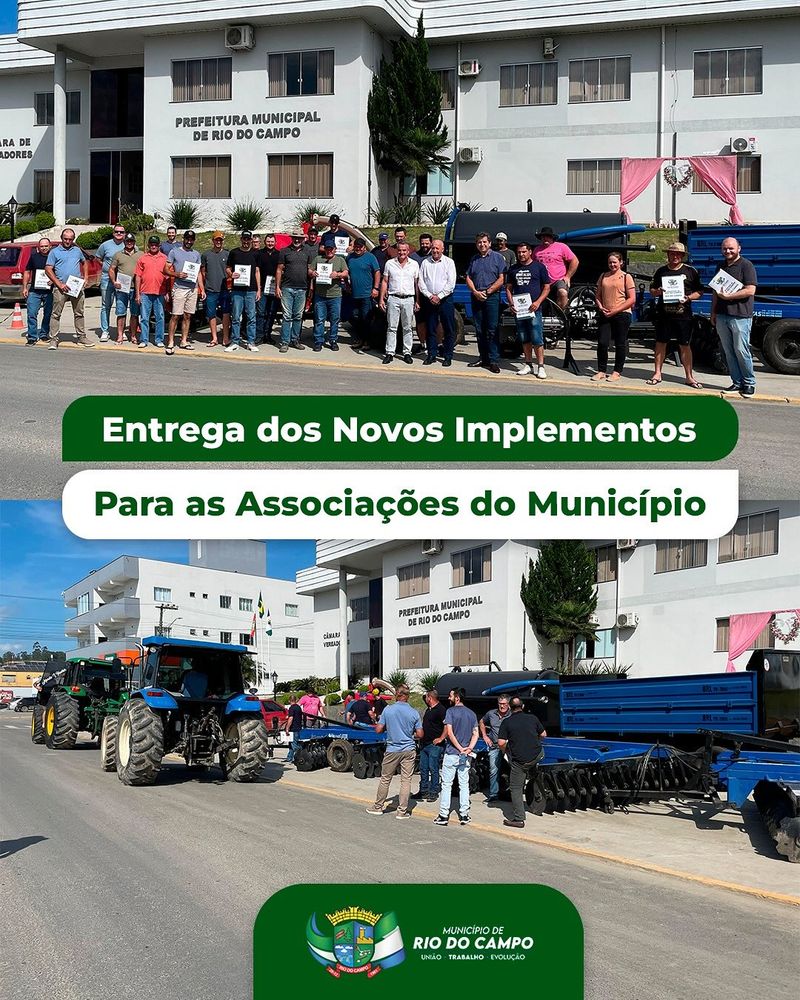 Na última sexta-feira 24 de outubro, a Secretaria Municipal de Agricultura realizou a entrega dos 12 implementos agrícolas às associações do município, reforçando o compromisso com o fortalecimento da agricultura e o desenvolvimento das comunidades rurais de Rio do Campo.
