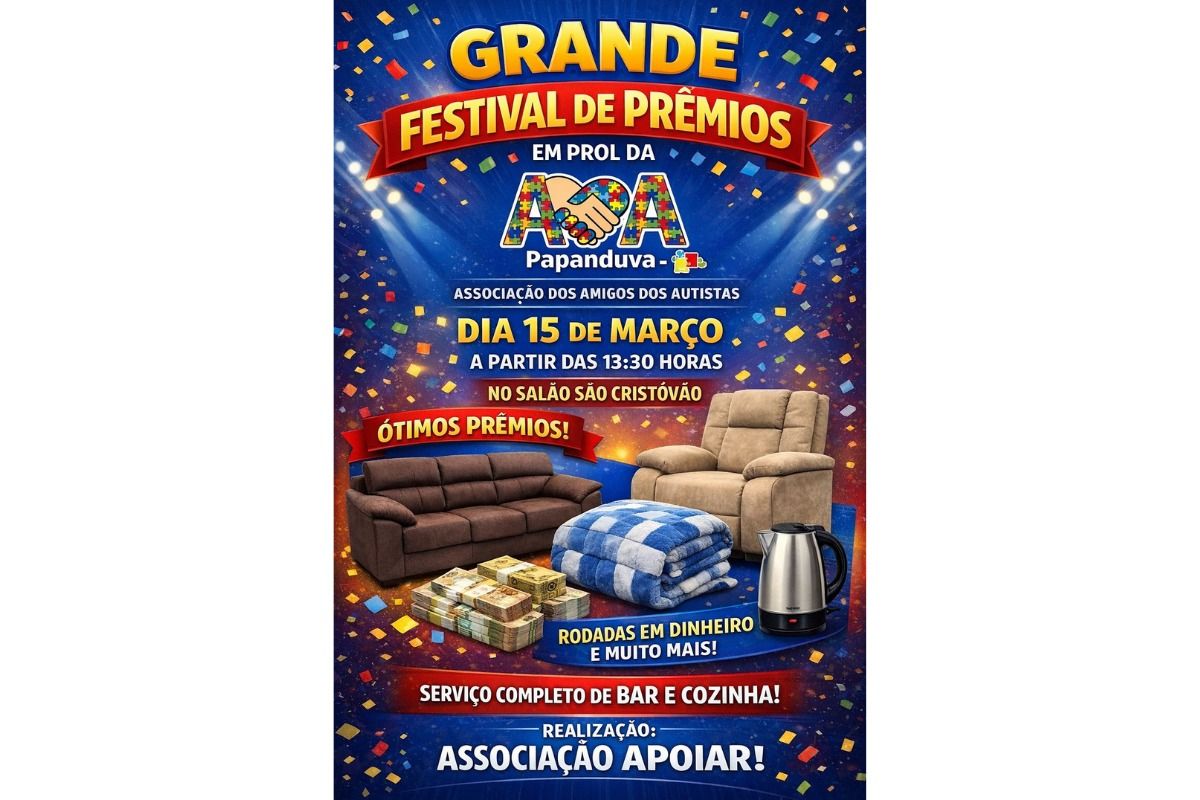A Associação dos Amigos dos Autistas (AMA) de Papanduva promove neste domingo, 15 de março, um Grande Festival de Prêmioscom o objetivo de arrecadar recursos para apoiar as atividades da entidade.