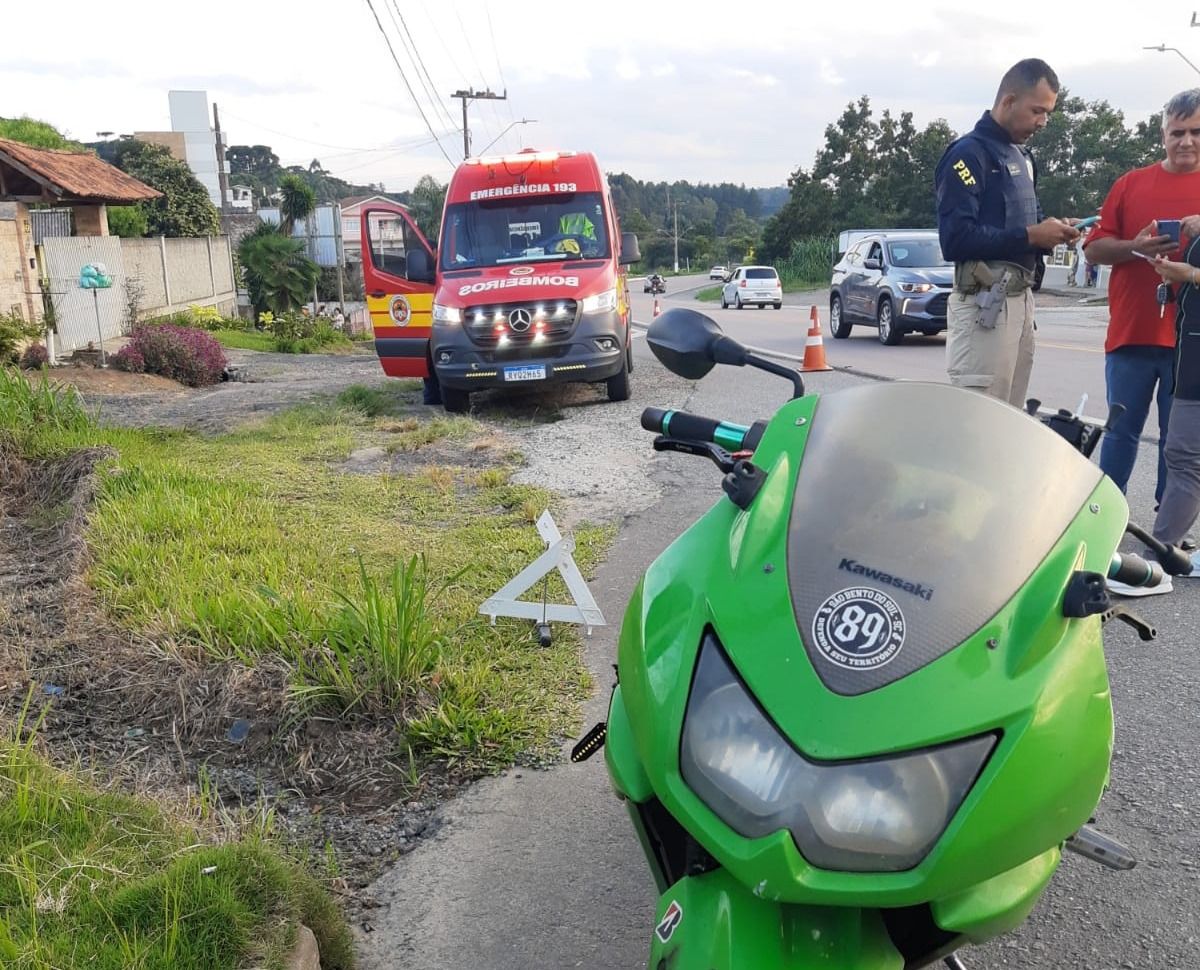 Um acidente de trânsito envolvendo motocicleta e automóvel foi registrado na tarde desta segunda-feira (23), na BR-280, no bairro Bela Vista, em Rio Negrinho.
