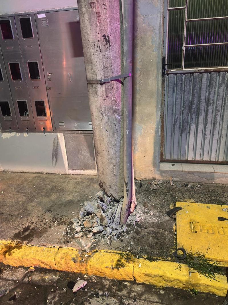 Conforme informado, o condutor passou por um grupo de pessoas após colidir no meio-fio e continuou trafegando de forma descontrolada. Metros adiante, perdeu novamente o controle da direção e atingiu um poste da rede de distribuição de energia elétrica, que ficou danificado com o impacto.