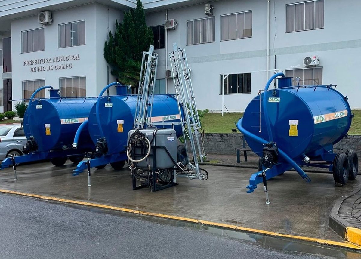 A agricultura de Rio do Campo recebeu novos implementos que irão contribuir para ampliar o atendimento e o suporte aos produtores rurais do município. Foram adquiridos três distribuidores de adubo líquido e um pulverizador agrícola com capacidade para 600 litros, equipamentos que prometem trazer mais eficiência e agilidade aos trabalhos no campo.