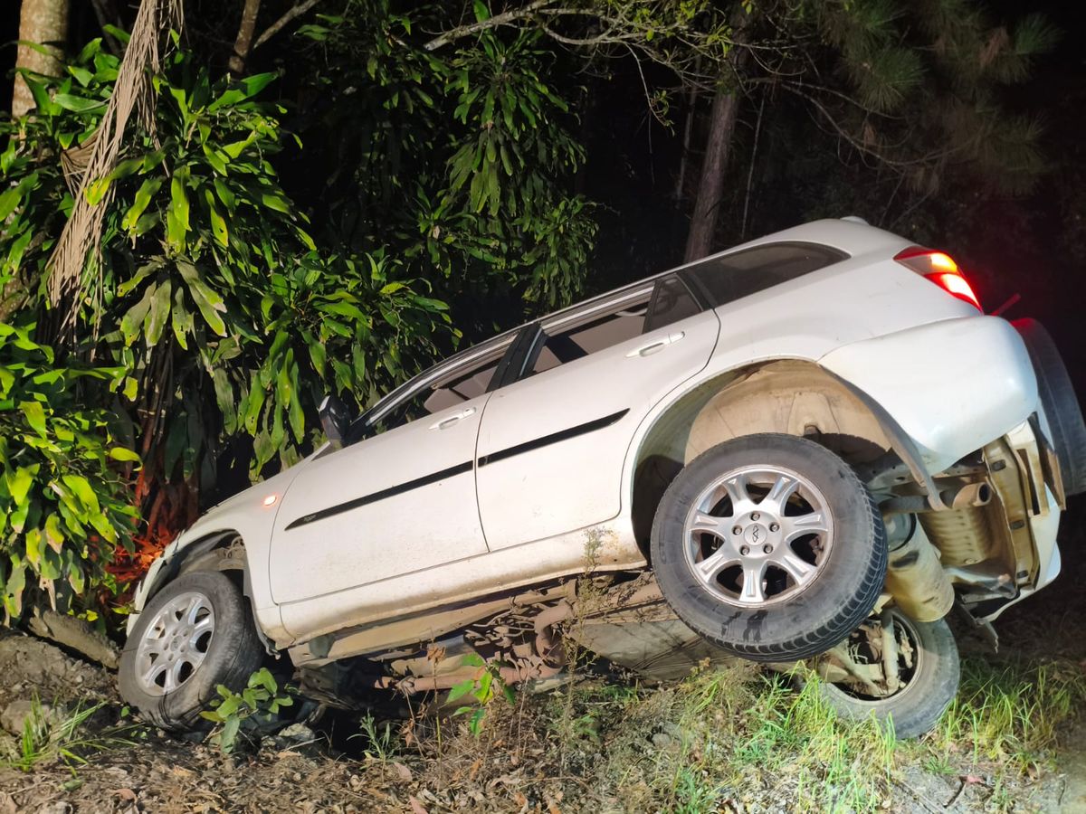 No local, os socorristas constataram a saída de pista de um veículo de passeio. No automóvel estavam dois ocupantes, um homem de 52 anos e outro de 59 anos.