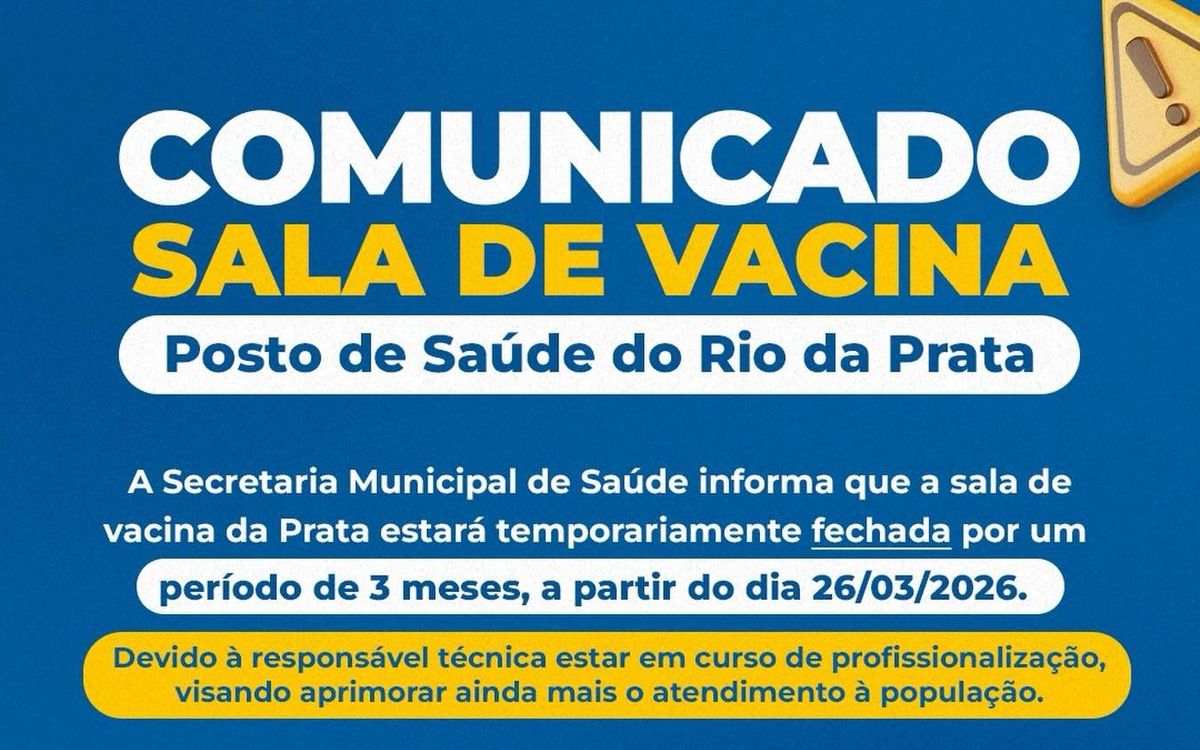 - Sala de vacinas do Rio da Prata fecha temporariamente por três meses, em Rio do Campo