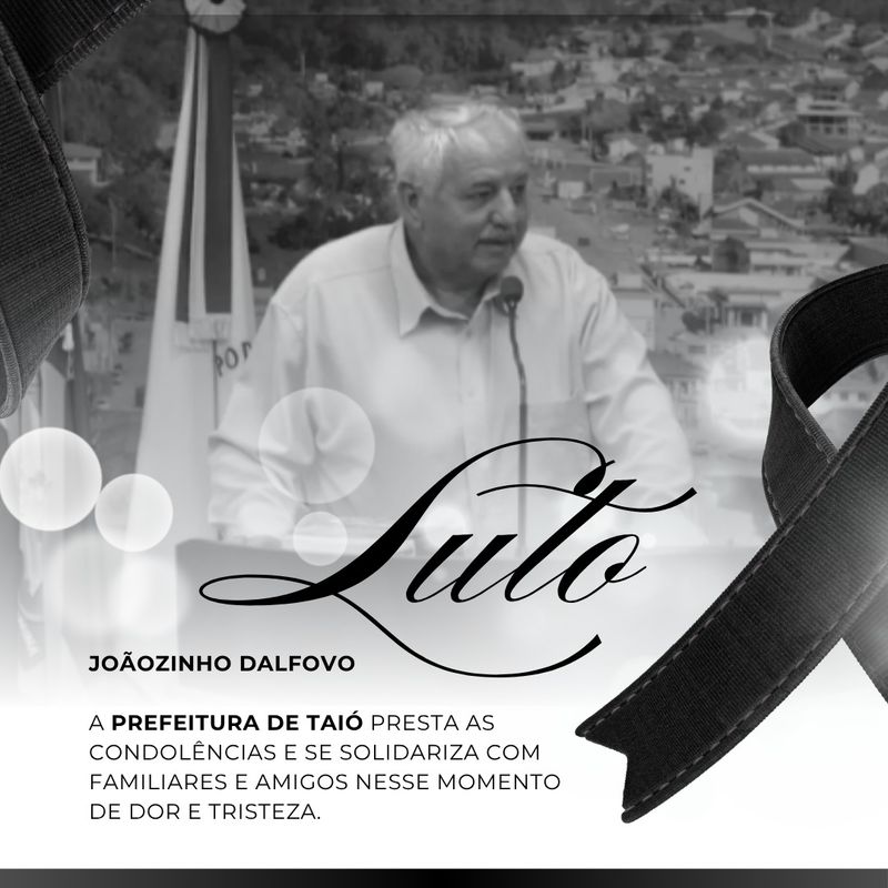 A Prefeitura de Taió manifestou profundo pesar pelo falecimento de Joãozinho Dalfovo, ocorrido no dia 24 de março de 2026.