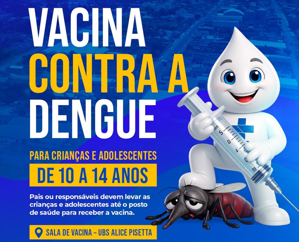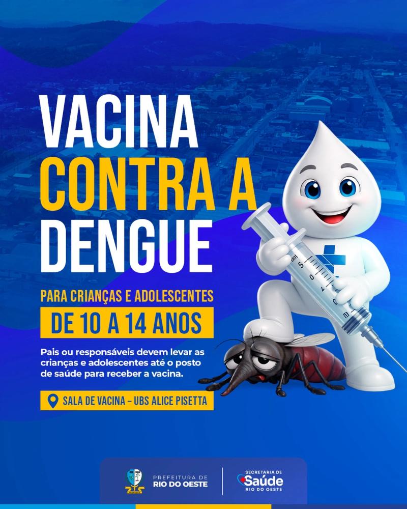 A Secretaria Municipal de Saúde de Rio do Oeste informa que a vacinação contra a dengue já está disponível para crianças e adolescentes com idade entre 10 e 14 anos.