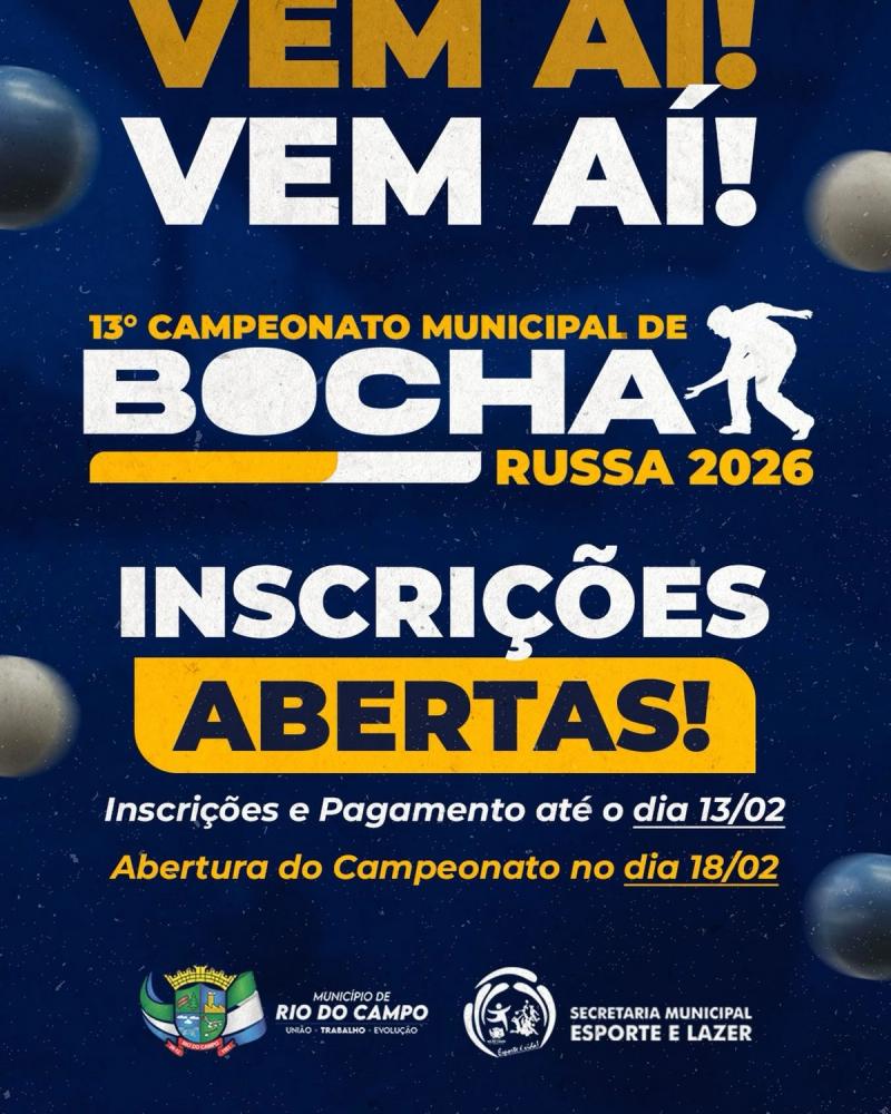 - 13º Campeonato Municipal de Bocha Russa tem inscrições abertas em Rio do Campo