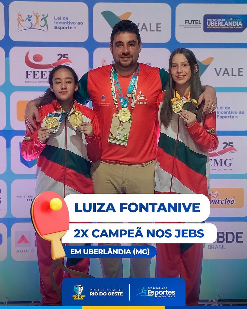 Rio do Oeste celebra o grande desempenho da atleta Luiza Fontanive, representando a EEB Exp. Mário Nardelli, nos Jogos Escolares Brasileiros (JEBs) — competição nacional para estudantes de 12 a 14 anos, realizada neste ano em Uberlândia (MG), reunindo os melhores atletas de cada estado.