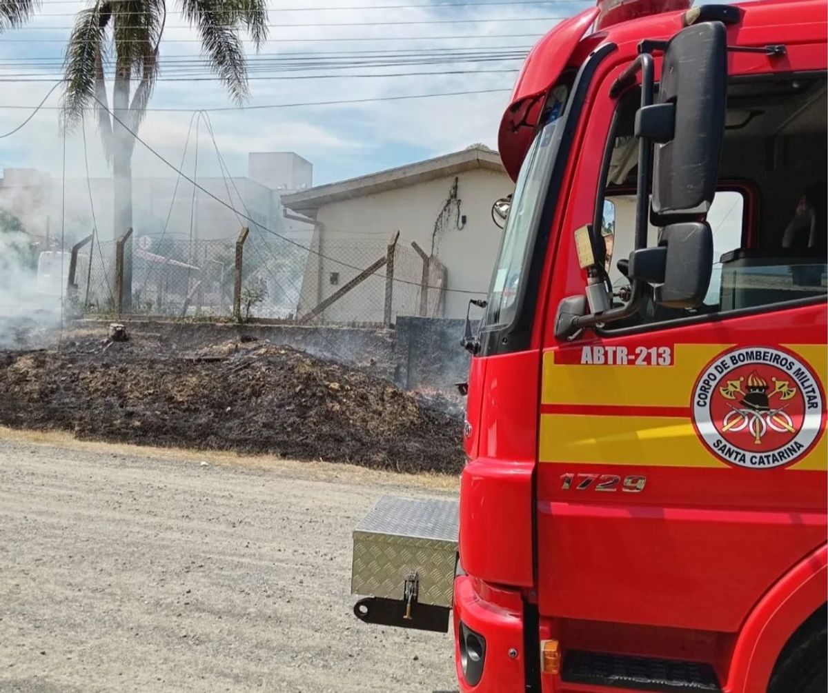 Fiação caiu na via e fogo atingiu vegetação seca; bombeiros isolaram área e acionaram a Celesc