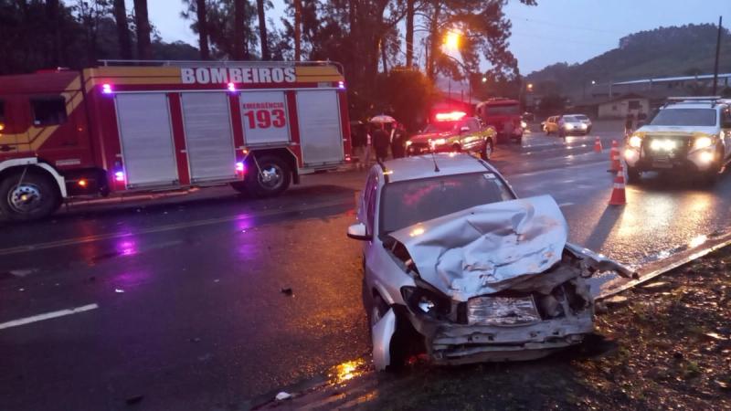 A colisão envolveu uma caminhonete Ford e um veículo Chevrolet Prisma. No total, quatro pessoas ficaram feridas — duas em cada veículo.