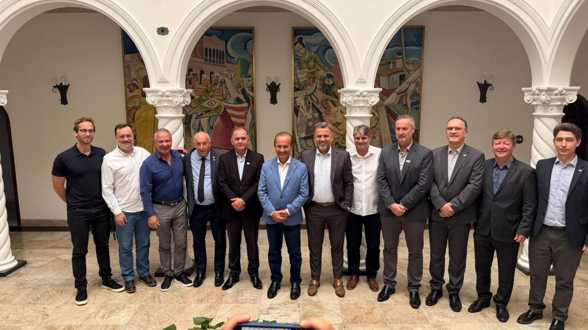 O deputado estadual Oscar Gutz participou da apresentação do projeto do Contorno Viário de Rio do Sul ao governador Jorginho Mello, em um encontro que reuniu empresários de Rio do Sul e Ituporanga, o prefeito de Rio do Sul, Manoel (PL), e o secretário de Estado da Infraestrutura, Jerry Comper.