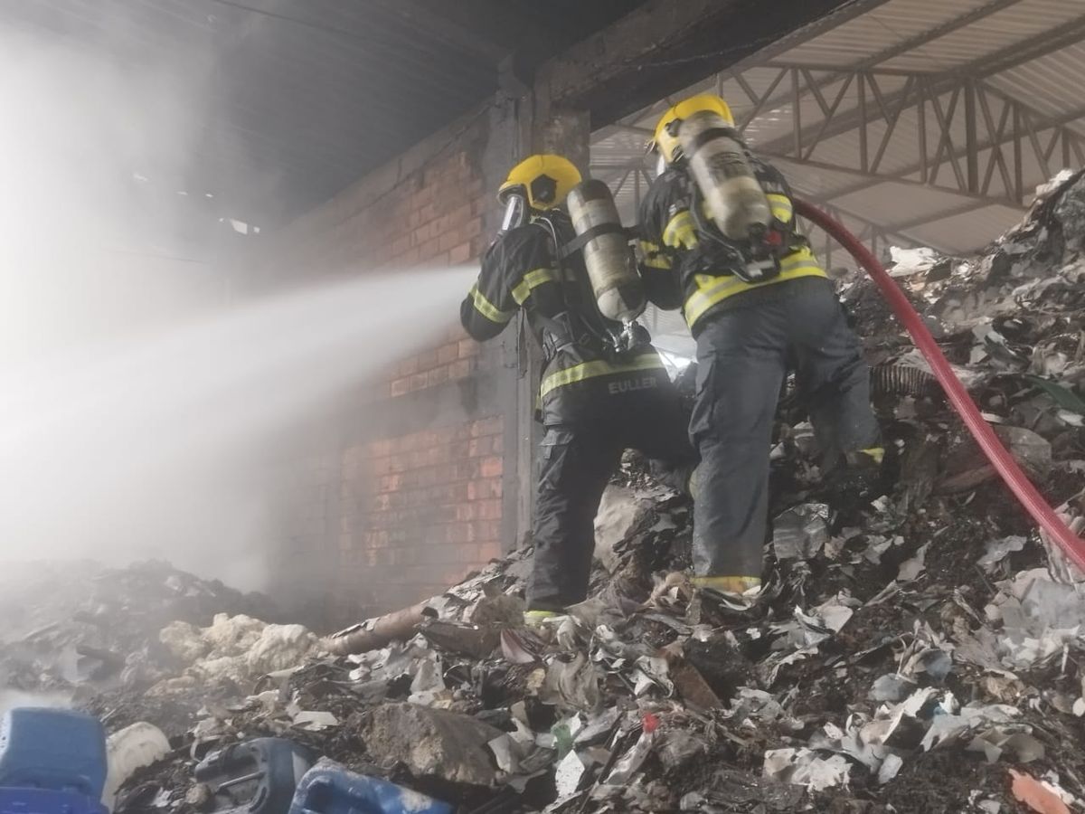 Foram empregadas as viaturas ABTR-181, ABTR-100, ABTR-68, AT-49 e ASU-608. Ao chegarem ao local, as guarnições confirmaram a natureza da ocorrência e encontraram o incêndio em fase de crescimento, atingindo um galpão que armazenava recicláveis e rejeitos industriais do tipo CDR (Combustível Derivado de Resíduos), com grande carga de fogo composta por plásticos, papelão, borracha e material orgânico.