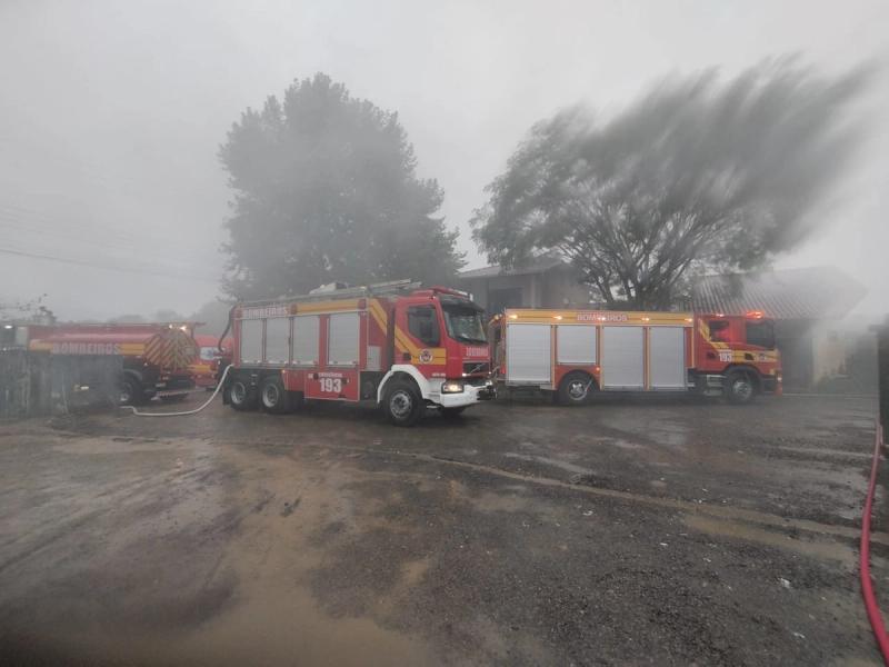 Fogo mobilizou bombeiros de São Bento do Sul e Campo Alegre e consumiu cerca de 470 m² da edificação