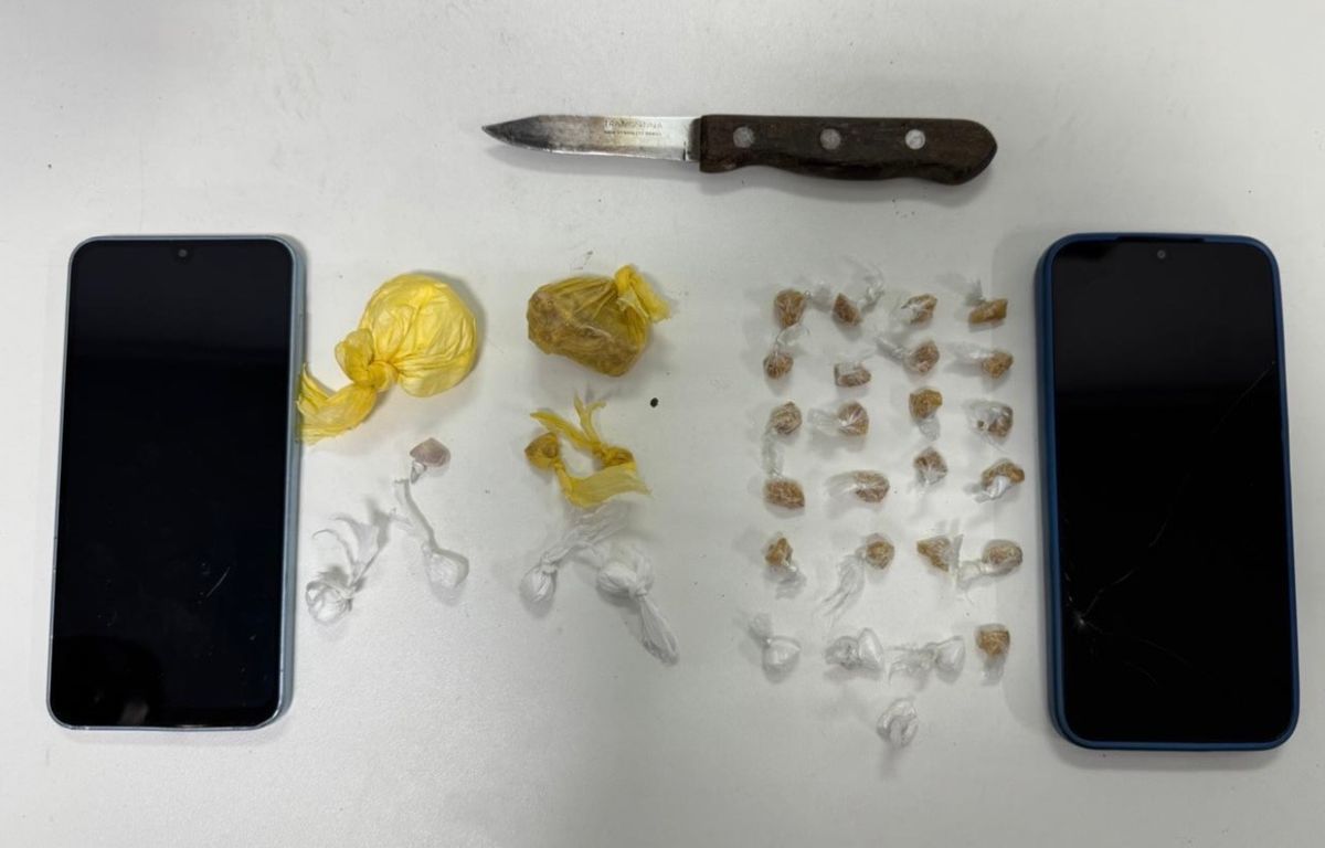 No local, os policiais apreenderam aparelhos celulares, além de porções de cocaína e pedras de crack, e outros materiais que indicam a prática de tráfico.