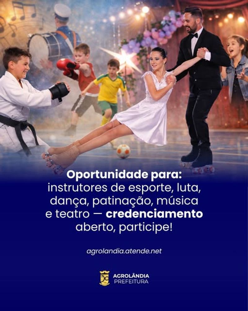 A Prefeitura de Agrolândia está com credenciamento aberto para pessoas jurídicas interessadas em prestar serviços como instrutores de atividades esportivas e culturais, no âmbito da Educação Integral e dos projetos desenvolvidos pelas Secretarias Municipais.