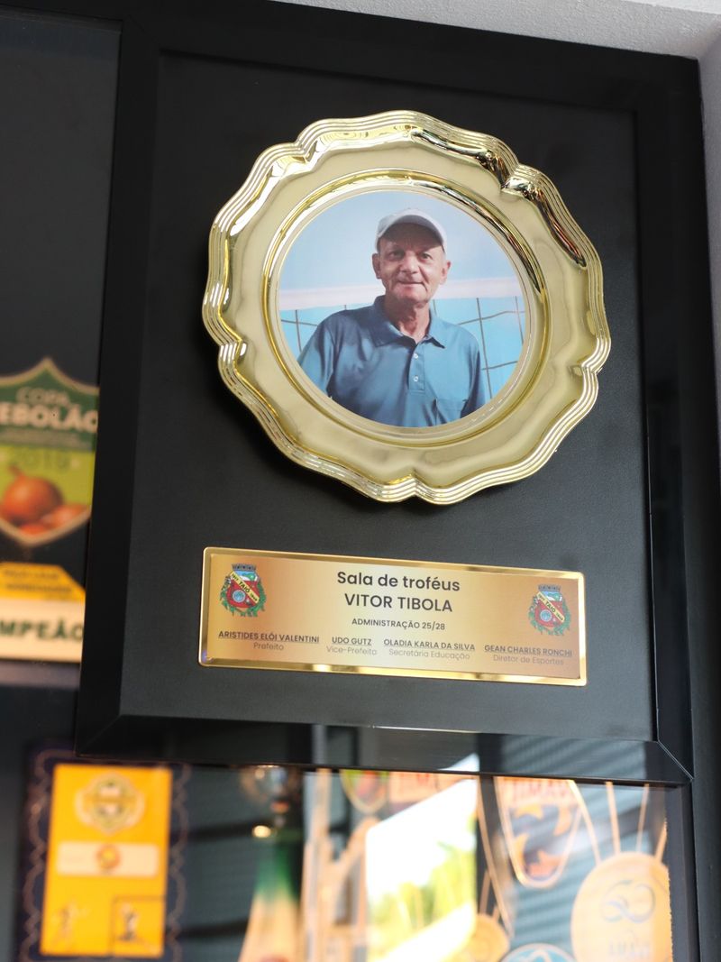 Durante a solenidade, o professor Vitor Tibola foi homenageado em reconhecimento aos relevantes serviços prestados ao esporte no município. A escolha do nome da sala é uma forma de valorizar sua dedicação e contribuição ao longo dos anos.