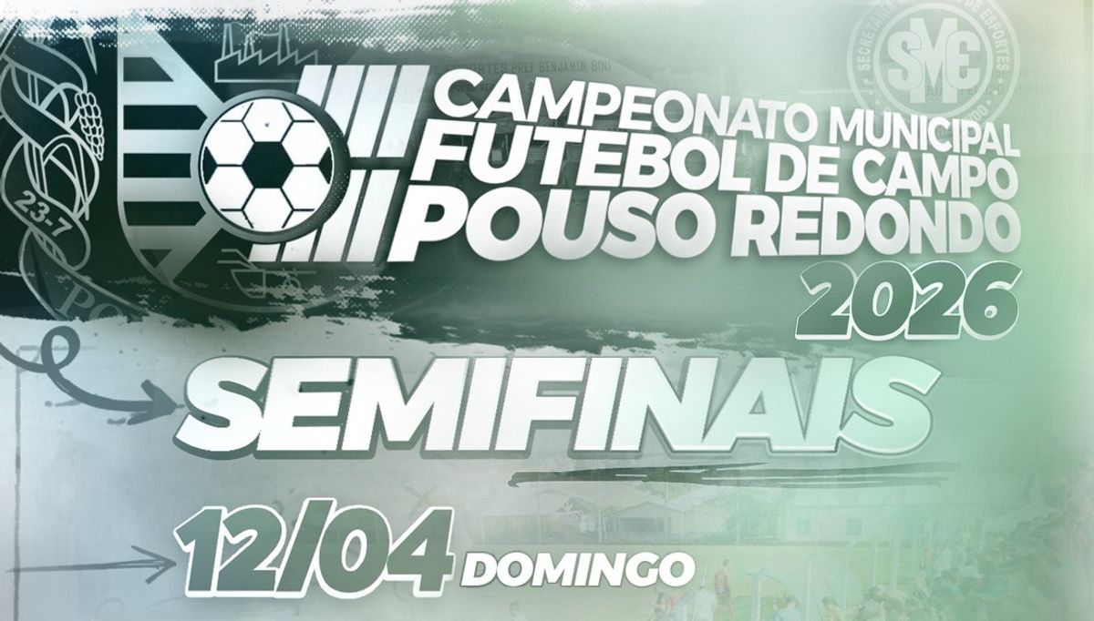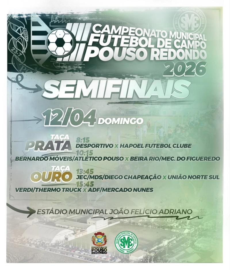 Em virtude da celebração da Páscoa neste domingo (05), as semifinais do Campeonato Municipal de Futebol de Campo de Pouso Redondo 2026 foram transferidas para o próximo domingo, dia 12 de abril. Os confrontos serão realizados no Estádio Municipal João Felício Adriano.
