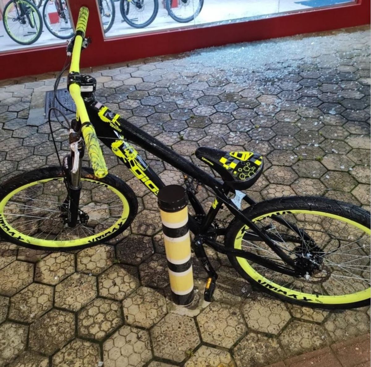 A ocorrência teve início por volta das 0h30, quando a Central de Emergências (190) recebeu a informação de que um furto estava em andamento. Conforme relatos de testemunhas, o suspeito quebrou a vitrine de uma loja e subtraiu uma bicicleta.